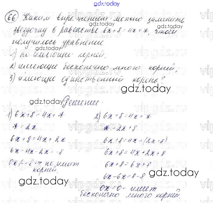 На страницах сайта gdz.today вы найдете учебный и вспомогательный материал, направленный на улучшения знаний школьной программы. ГДЗ - онлайн мир знаний Решение к упражнениям 66 Учебнику по Алгебре для 7 класса Мерзляк, Полонский Базовый уровень Вентана-граф Алгоритм успеха 2016