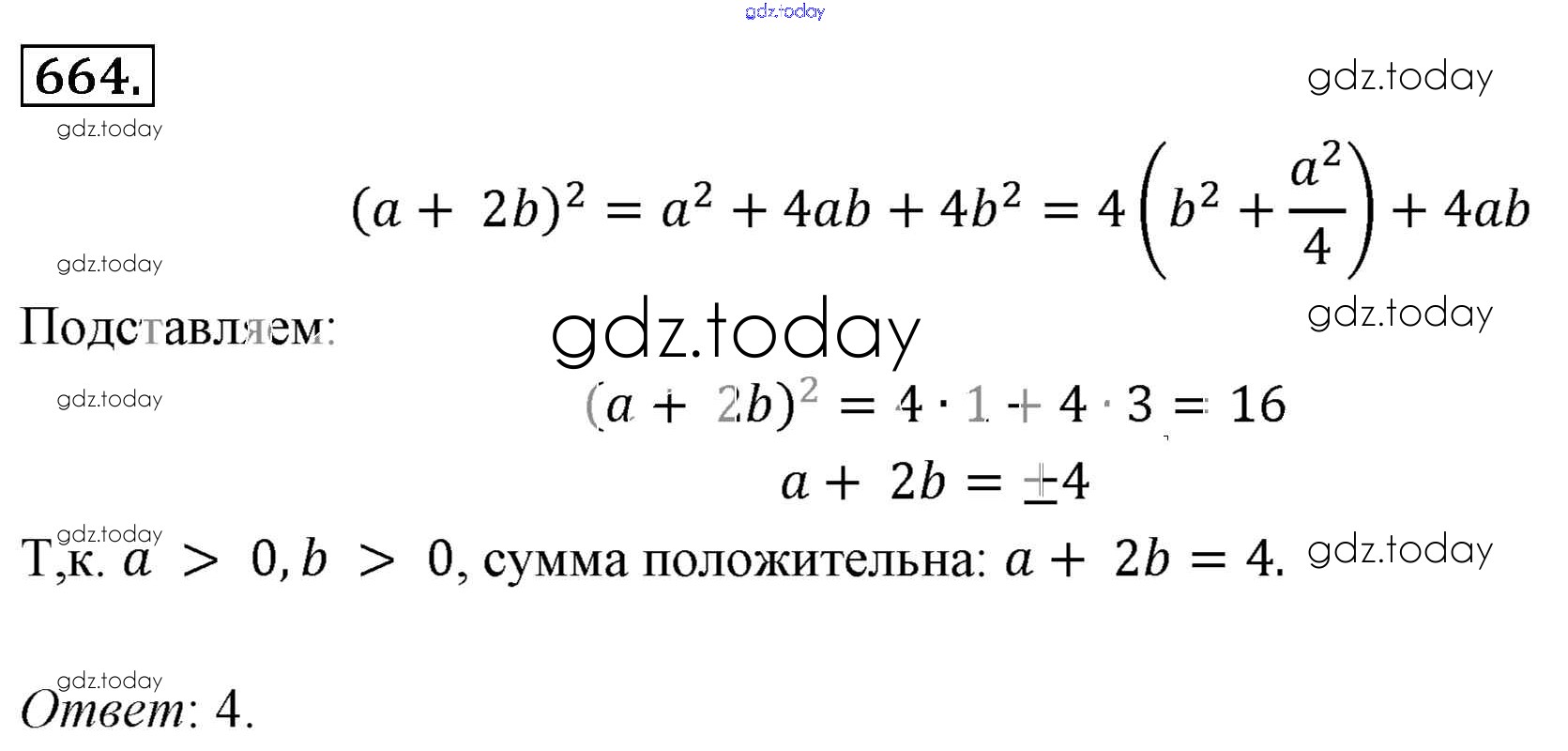 На страницах сайта gdz.today вы найдете учебный и вспомогательный материал, направленный на улучшения знаний школьной программы. ГДЗ - онлайн мир знаний Решение к упражнениям 664 Учебнику по Алгебре для 7 класса Мерзляк, Полонский Базовый уровень Вентана-граф Алгоритм успеха 2016