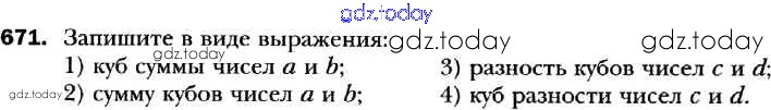 На страницах сайта gdz.today вы найдете учебный и вспомогательный материал, направленный на улучшения знаний школьной программы. ГДЗ - онлайн мир знаний Решение к упражнениям 671 Учебнику по Алгебре для 7 класса Мерзляк, Полонский Базовый уровень Вентана-граф Алгоритм успеха 2016