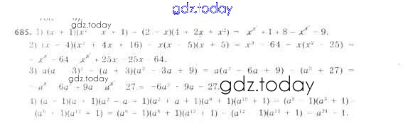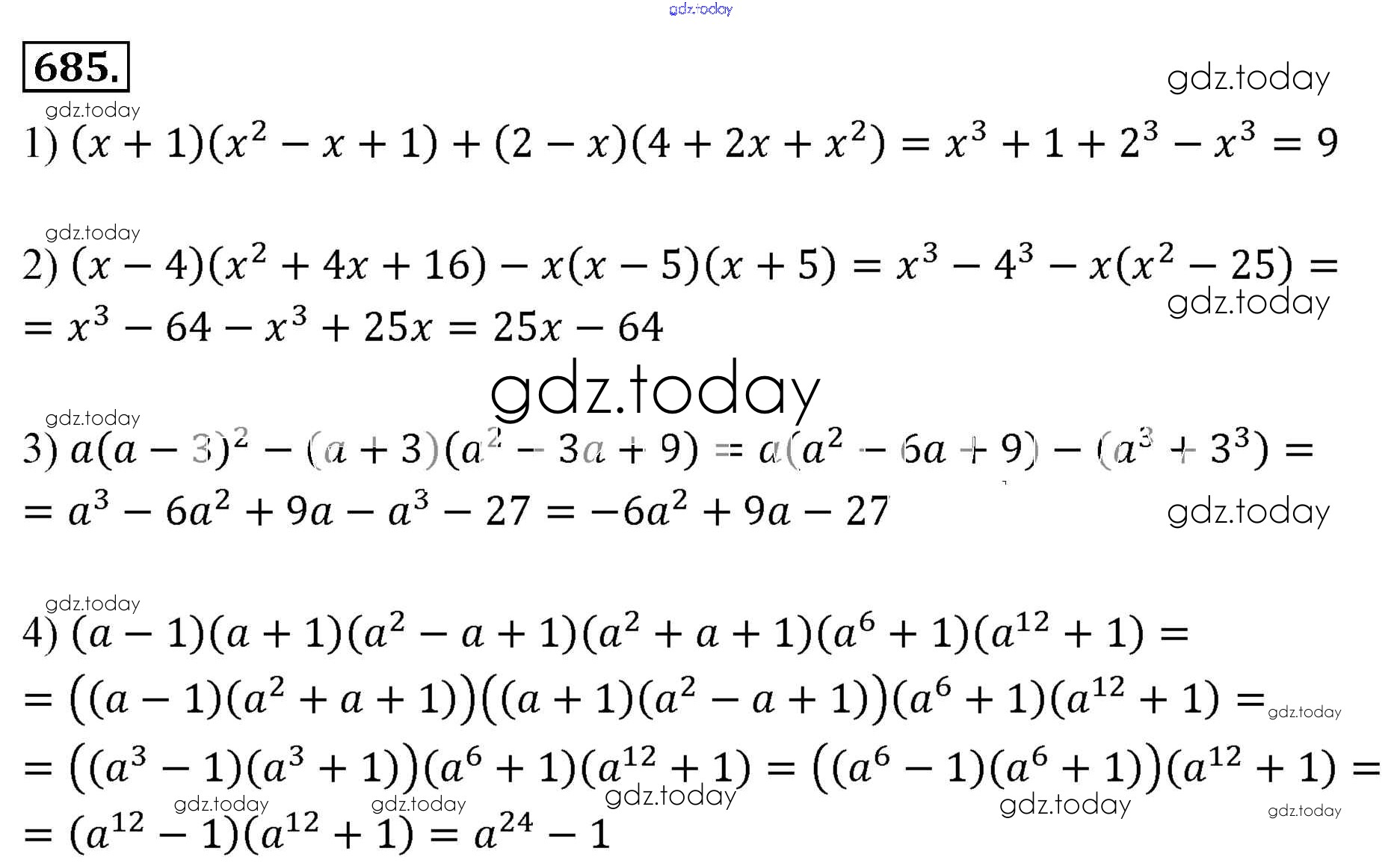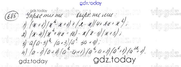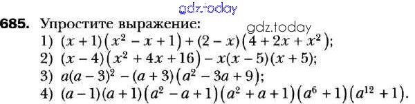 На страницах сайта gdz.today вы найдете учебный и вспомогательный материал, направленный на улучшения знаний школьной программы. ГДЗ - онлайн мир знаний Решение к упражнениям 685 Учебнику по Алгебре для 7 класса Мерзляк, Полонский Базовый уровень Вентана-граф Алгоритм успеха 2016