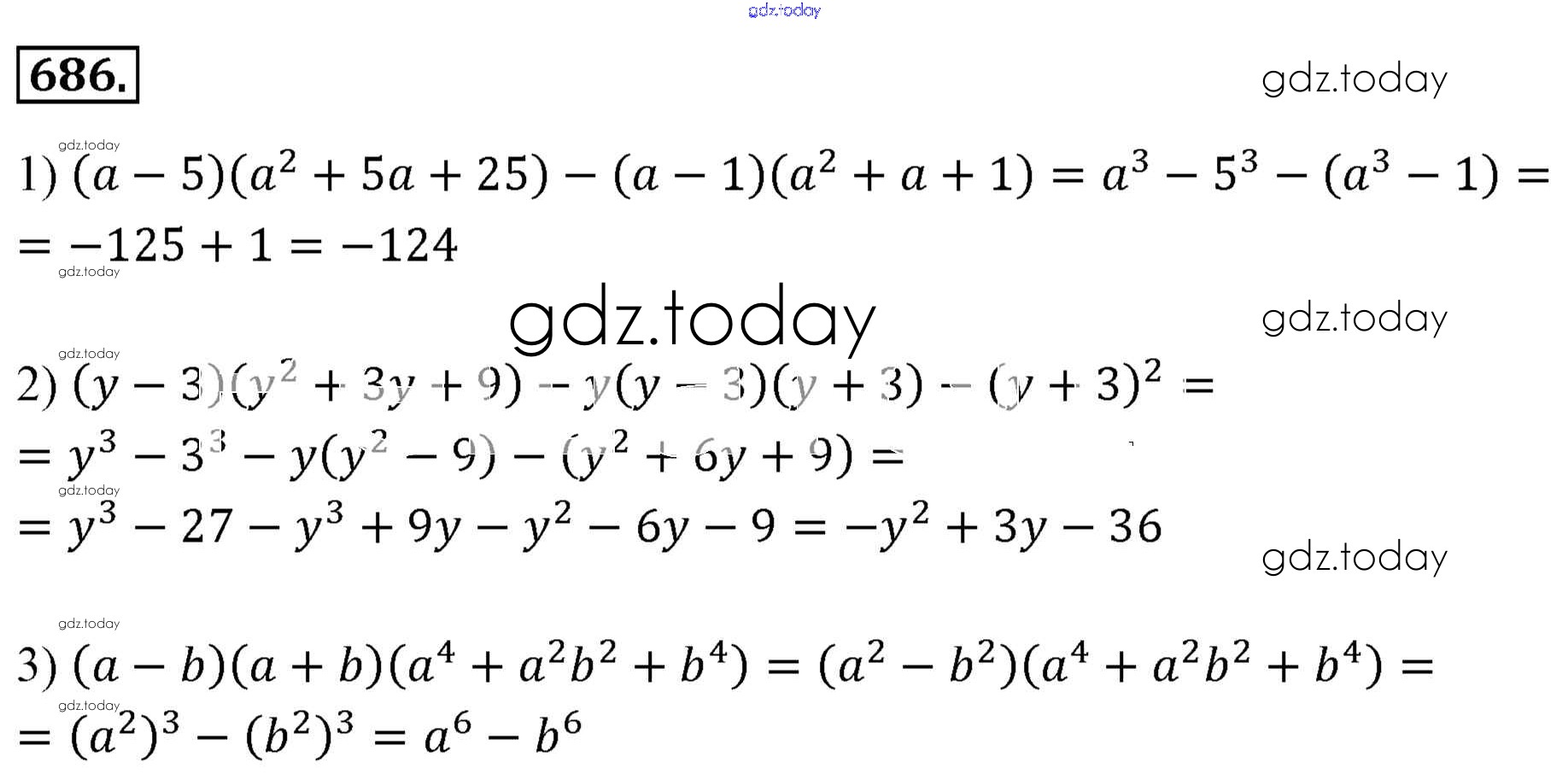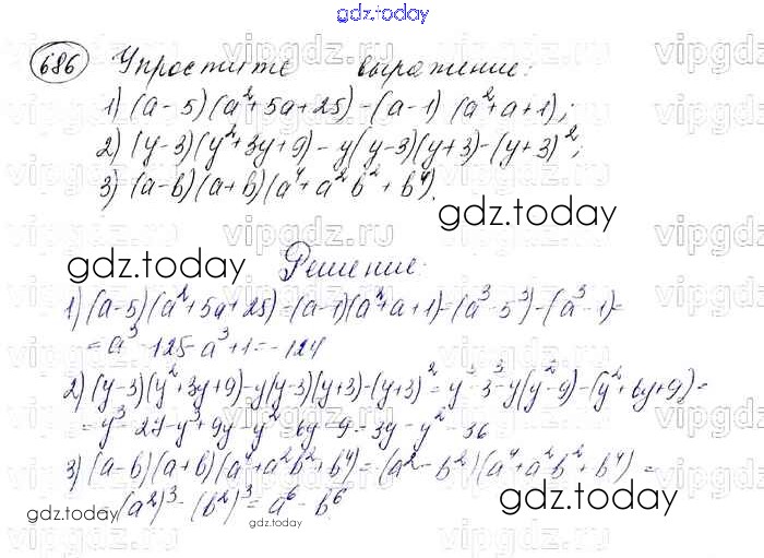 На страницах сайта gdz.today вы найдете учебный и вспомогательный материал, направленный на улучшения знаний школьной программы. ГДЗ - онлайн мир знаний Решение к упражнениям 686 Учебнику по Алгебре для 7 класса Мерзляк, Полонский Базовый уровень Вентана-граф Алгоритм успеха 2016