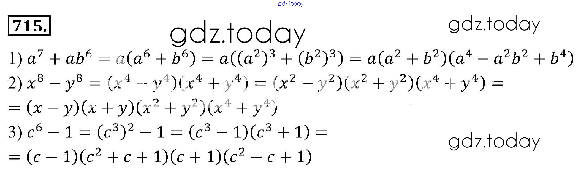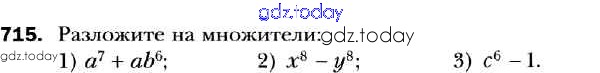 На страницах сайта gdz.today вы найдете учебный и вспомогательный материал, направленный на улучшения знаний школьной программы. ГДЗ - онлайн мир знаний Решение к упражнениям 715 Учебнику по Алгебре для 7 класса Мерзляк, Полонский Базовый уровень Вентана-граф Алгоритм успеха 2016