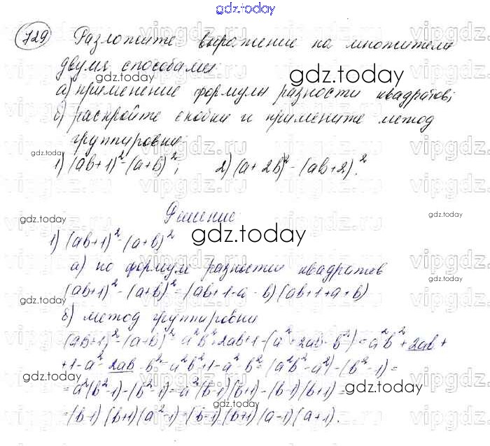 На страницах сайта gdz.today вы найдете учебный и вспомогательный материал, направленный на улучшения знаний школьной программы. ГДЗ - онлайн мир знаний Решение к упражнениям 729 Учебнику по Алгебре для 7 класса Мерзляк, Полонский Базовый уровень Вентана-граф Алгоритм успеха 2016