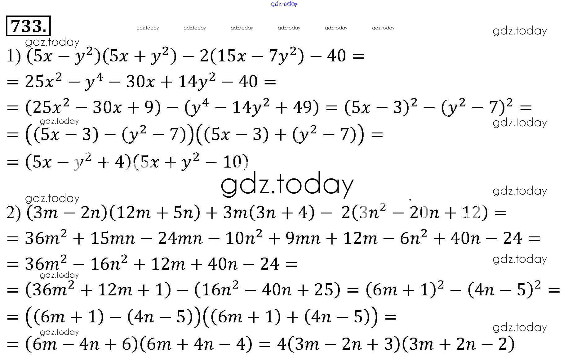 Ответы к Решение к упражнениям 733 Учебнику по Алгебре для 7 класса Мерзляк, Полонский Базовый уровень Вентана-граф Алгоритм успеха 2016