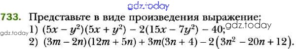 На страницах сайта gdz.today вы найдете учебный и вспомогательный материал, направленный на улучшения знаний школьной программы. ГДЗ - онлайн мир знаний Решение к упражнениям 733 Учебнику по Алгебре для 7 класса Мерзляк, Полонский Базовый уровень Вентана-граф Алгоритм успеха 2016