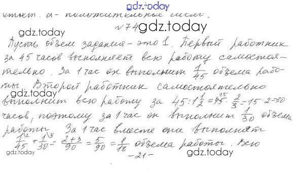 Ответы к Решение к упражнениям 74 Учебнику по Алгебре для 7 класса Мерзляк, Полонский Базовый уровень Вентана-граф Алгоритм успеха 2016