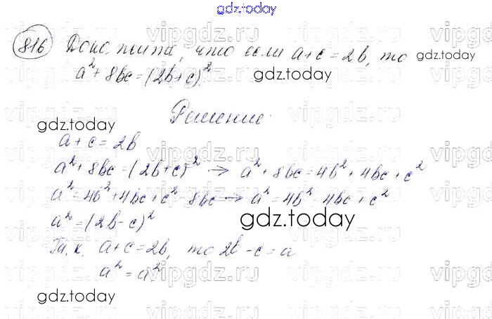 На страницах сайта gdz.today вы найдете учебный и вспомогательный материал, направленный на улучшения знаний школьной программы. ГДЗ - онлайн мир знаний Решение к упражнениям 816 Учебнику по Алгебре для 7 класса Мерзляк, Полонский Базовый уровень Вентана-граф Алгоритм успеха 2016