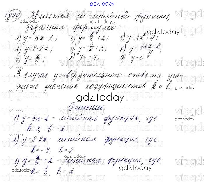 Ответы к Решение к упражнениям 849 Учебнику по Алгебре для 7 класса Мерзляк, Полонский Базовый уровень Вентана-граф Алгоритм успеха 2016
