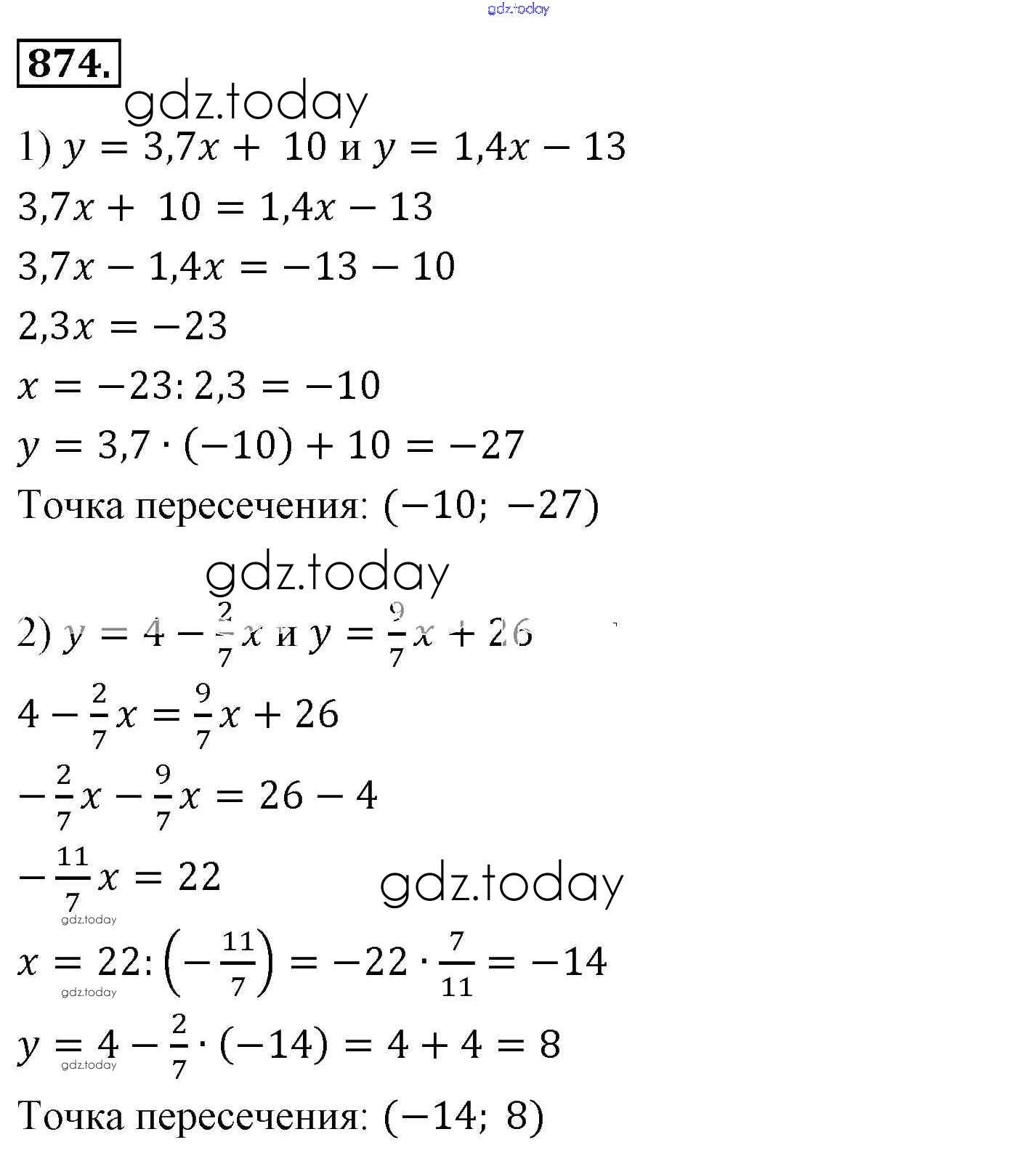 Ответы к Решение к упражнениям 874 Учебнику по Алгебре для 7 класса Мерзляк, Полонский Базовый уровень Вентана-граф Алгоритм успеха 2016