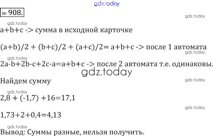 Ответы к Решение к упражнениям 908 Учебнику по Алгебре для 7 класса Мерзляк, Полонский Базовый уровень Вентана-граф Алгоритм успеха 2016