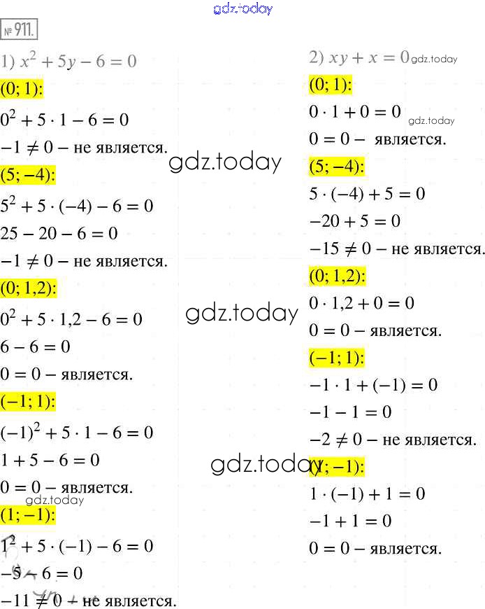 Ответы к Решение к упражнениям 911 Учебнику по Алгебре для 7 класса Мерзляк, Полонский Базовый уровень Вентана-граф Алгоритм успеха 2016