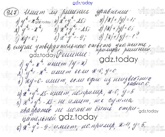 На страницах сайта gdz.today вы найдете учебный и вспомогательный материал, направленный на улучшения знаний школьной программы. ГДЗ - онлайн мир знаний Решение к упражнениям 927 Учебнику по Алгебре для 7 класса Мерзляк, Полонский Базовый уровень Вентана-граф Алгоритм успеха 2016