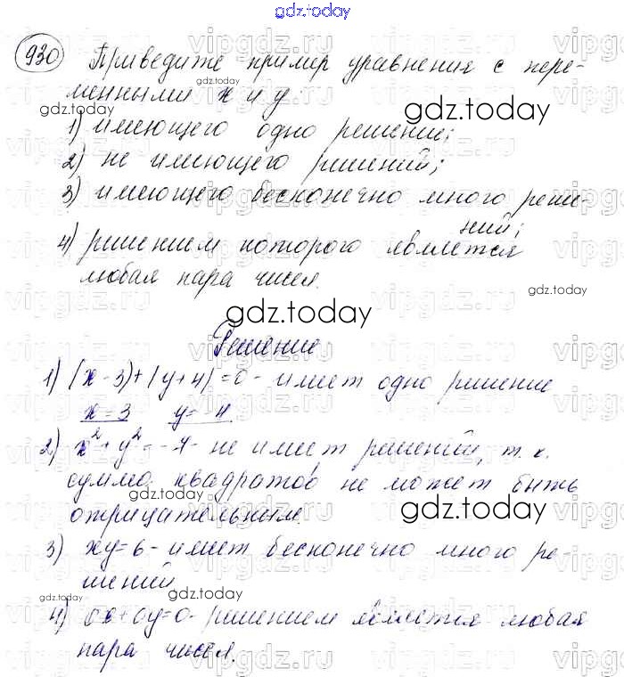 На страницах сайта gdz.today вы найдете учебный и вспомогательный материал, направленный на улучшения знаний школьной программы. ГДЗ - онлайн мир знаний Решение к упражнениям 930 Учебнику по Алгебре для 7 класса Мерзляк, Полонский Базовый уровень Вентана-граф Алгоритм успеха 2016
