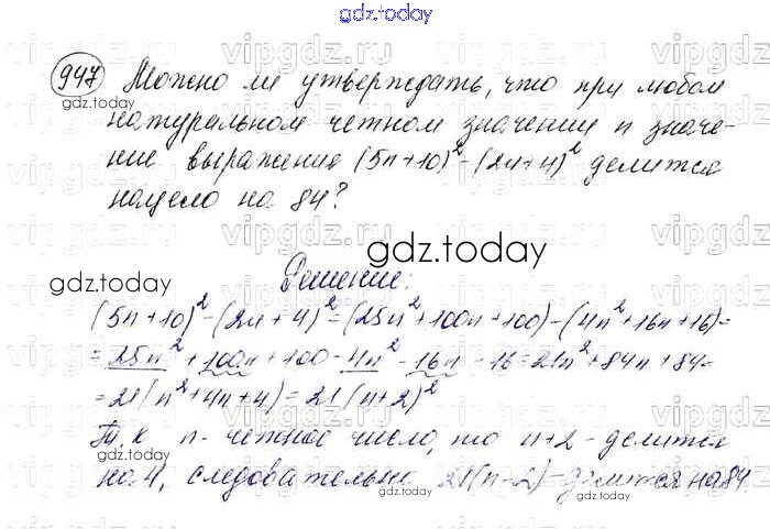 На страницах сайта gdz.today вы найдете учебный и вспомогательный материал, направленный на улучшения знаний школьной программы. ГДЗ - онлайн мир знаний Решение к упражнениям 947 Учебнику по Алгебре для 7 класса Мерзляк, Полонский Базовый уровень Вентана-граф Алгоритм успеха 2016