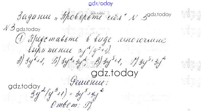 На страницах сайта gdz.today вы найдете учебный и вспомогательный материал, направленный на улучшения знаний школьной программы. ГДЗ - онлайн мир знаний 3 Проверь себя (решение) 1 Учебнику по Алгебре для 7 класса Мерзляк, Полонский Базовый уровень Вентана-граф Алгоритм успеха 2016