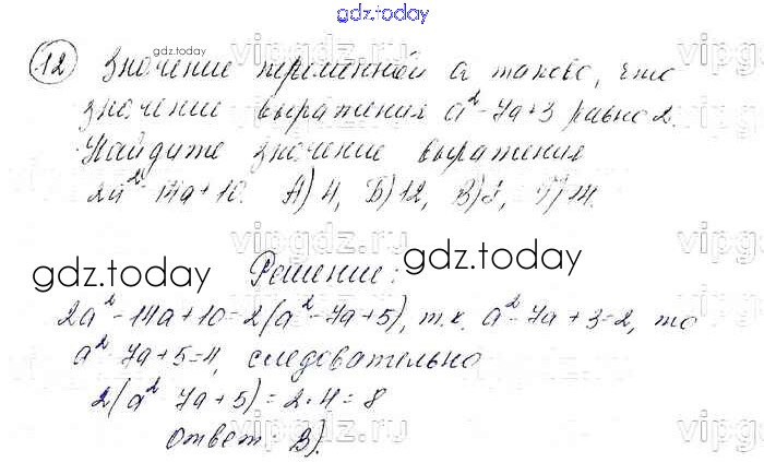 Ответы к 3 Проверь себя (решение) 12 Учебнику по Алгебре для 7 класса Мерзляк, Полонский Базовый уровень Вентана-граф Алгоритм успеха 2016