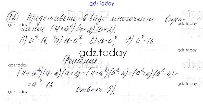 На страницах сайта gdz.today вы найдете учебный и вспомогательный материал, направленный на улучшения знаний школьной программы. ГДЗ - онлайн мир знаний 4 Проверь себя (решение) 12 Учебнику по Алгебре для 7 класса Мерзляк, Полонский Базовый уровень Вентана-граф Алгоритм успеха 2016