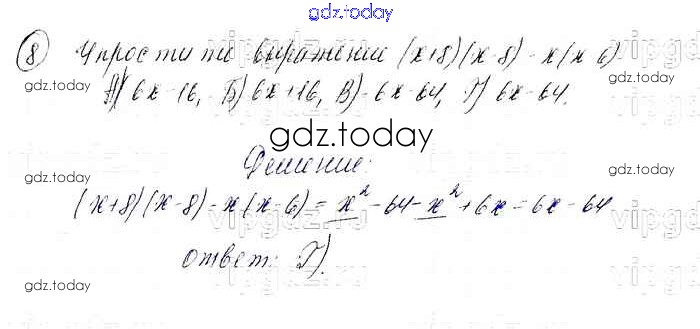 На страницах сайта gdz.today вы найдете учебный и вспомогательный материал, направленный на улучшения знаний школьной программы. ГДЗ - онлайн мир знаний 4 Проверь себя (решение) 8 Учебнику по Алгебре для 7 класса Мерзляк, Полонский Базовый уровень Вентана-граф Алгоритм успеха 2016