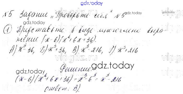 На страницах сайта gdz.today вы найдете учебный и вспомогательный материал, направленный на улучшения знаний школьной программы. ГДЗ - онлайн мир знаний 5 Проверь себя (решение) 1 Учебнику по Алгебре для 7 класса Мерзляк, Полонский Базовый уровень Вентана-граф Алгоритм успеха 2016