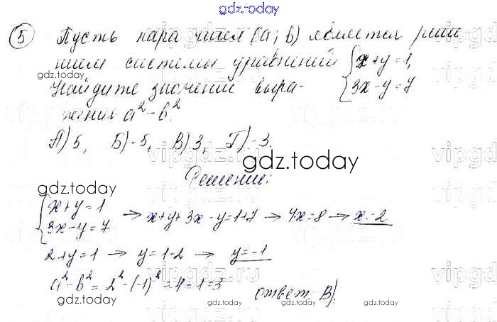 На страницах сайта gdz.today вы найдете учебный и вспомогательный материал, направленный на улучшения знаний школьной программы. ГДЗ - онлайн мир знаний 7 Проверь себя (решение) 5 Учебнику по Алгебре для 7 класса Мерзляк, Полонский Базовый уровень Вентана-граф Алгоритм успеха 2016