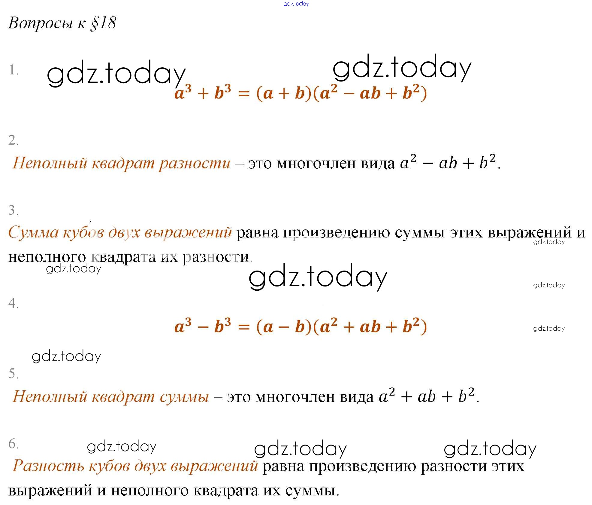 На страницах сайта gdz.today вы найдете учебный и вспомогательный материал, направленный на улучшения знаний школьной программы. ГДЗ - онлайн мир знаний Вопросы к параграфам (решение) 18 Учебнику по Алгебре для 7 класса Мерзляк, Полонский Базовый уровень Вентана-граф Алгоритм успеха 2016