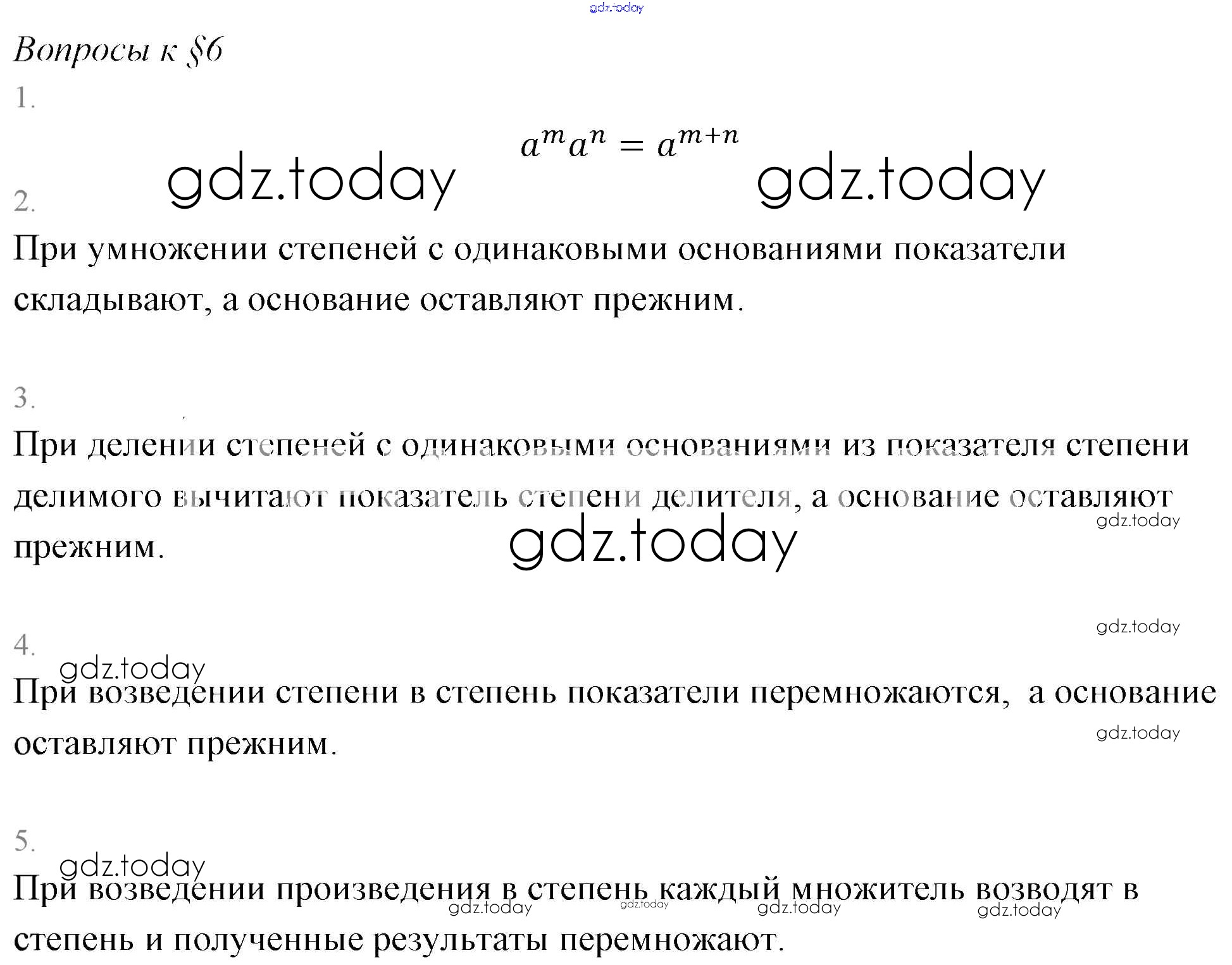 Ответы к Вопросы к параграфам (решение) 6 Учебнику по Алгебре для 7 класса Мерзляк, Полонский Базовый уровень Вентана-граф Алгоритм успеха 2016