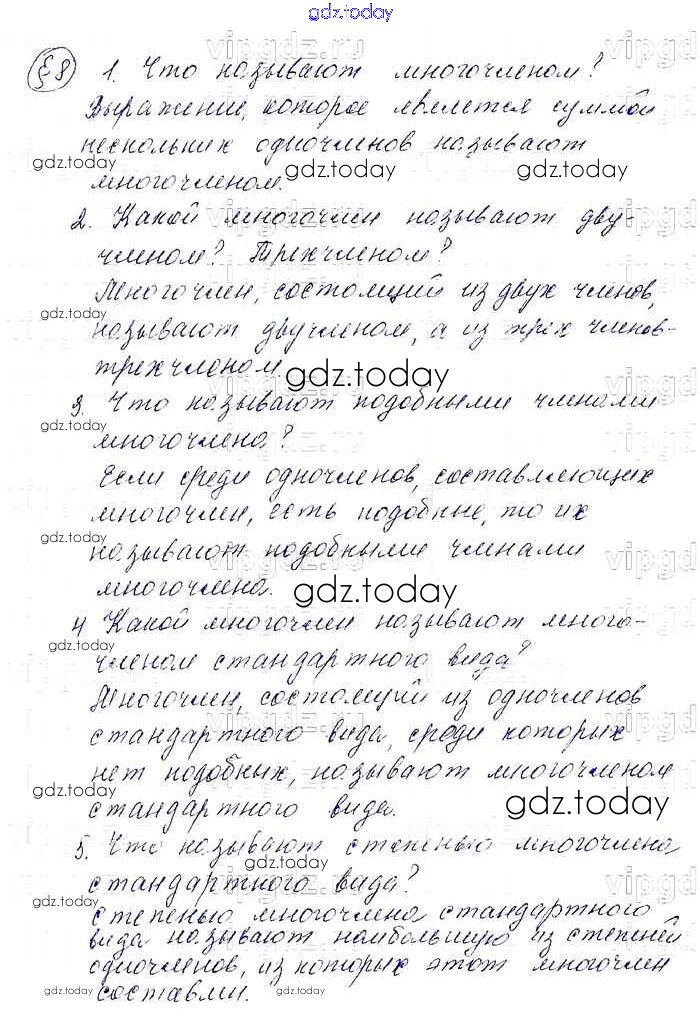 На страницах сайта gdz.today вы найдете учебный и вспомогательный материал, направленный на улучшения знаний школьной программы. ГДЗ - онлайн мир знаний Вопросы к параграфам (решение) 8 Учебнику по Алгебре для 7 класса Мерзляк, Полонский Базовый уровень Вентана-граф Алгоритм успеха 2016