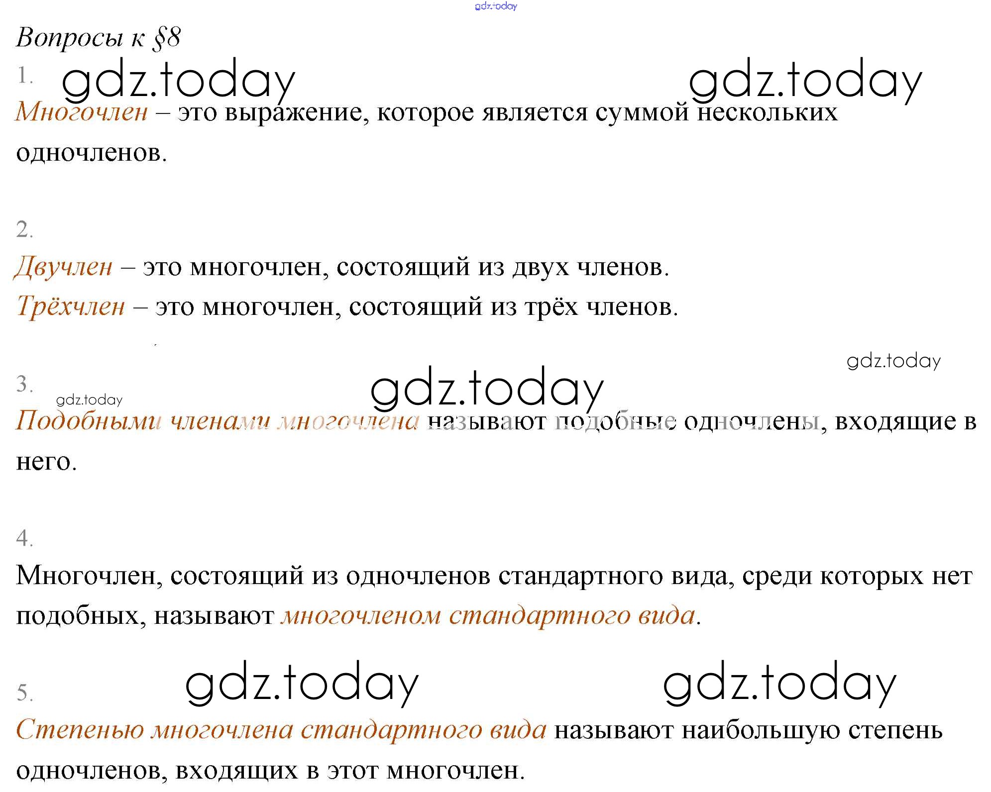 Ответы к Вопросы к параграфам (решение) 8 Учебнику по Алгебре для 7 класса Мерзляк, Полонский Базовый уровень Вентана-граф Алгоритм успеха 2016