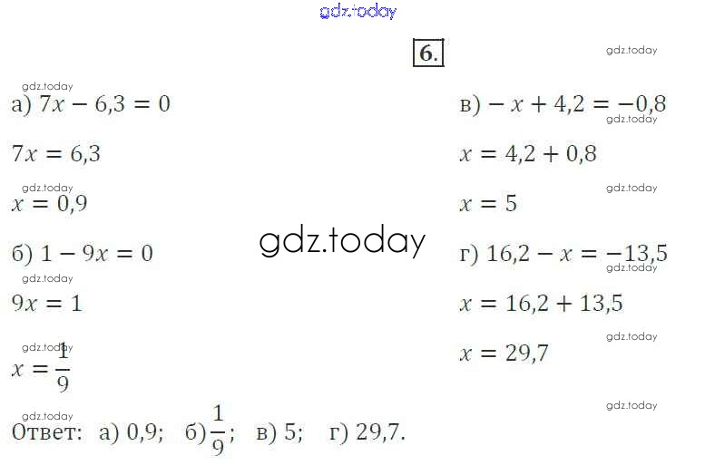Ответы к Решение. §7. Линейное уравнение с одной переменной 6 Рабочей тетради по Алгебре для 7 класса Миндюк, Шлыкова Просвещение УМК 2017