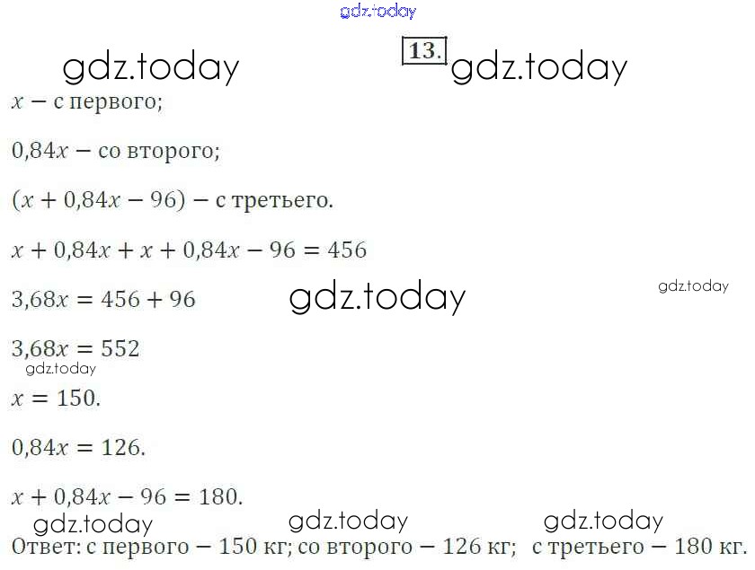 Ответы к Решение. §8. Решение задач с помощью уравнений 13 Рабочей тетради по Алгебре для 7 класса Миндюк, Шлыкова Просвещение УМК 2017