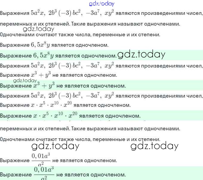 Ответы к Решение. §19. Одночлен и его стандартный вид 1 Рабочей тетради по Алгебре для 7 класса Миндюк, Шлыкова Просвещение УМК 2017