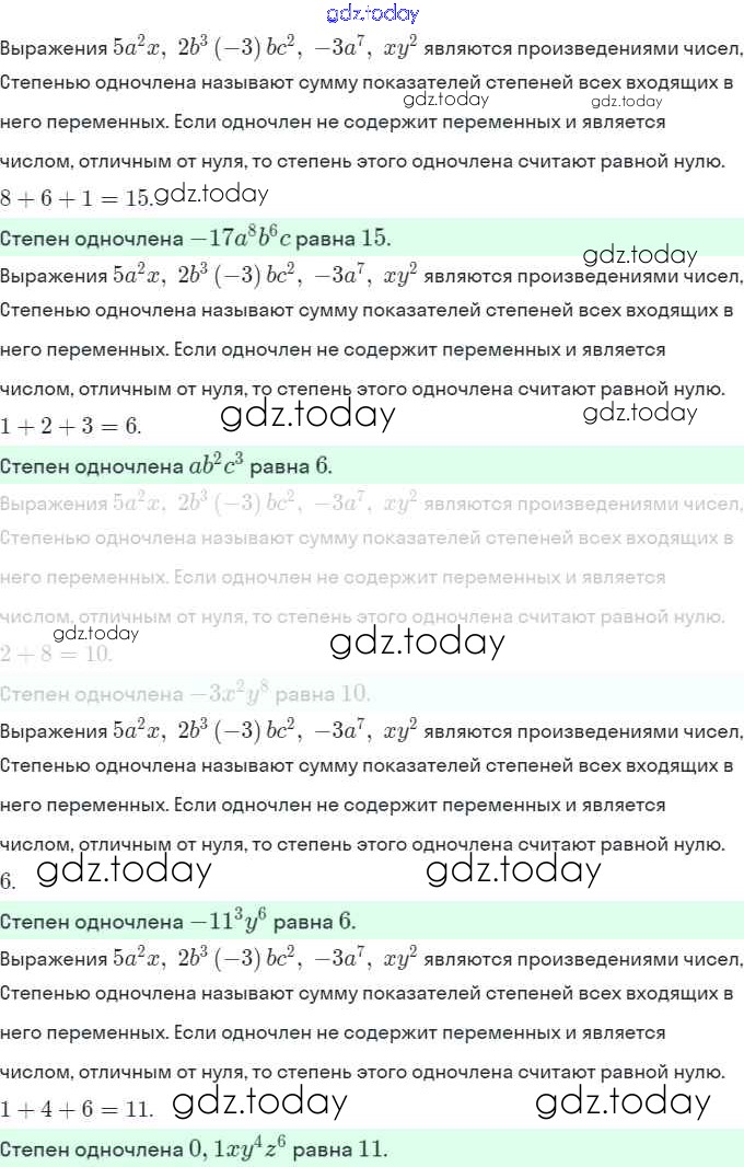 Ответы к Решение. §19. Одночлен и его стандартный вид 4 Рабочей тетради по Алгебре для 7 класса Миндюк, Шлыкова Просвещение УМК 2017