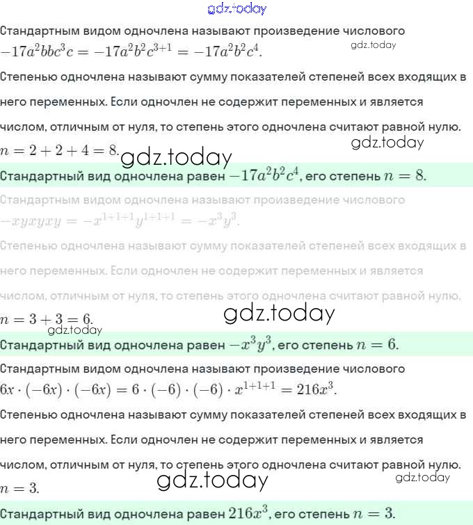 Ответы к Решение. §19. Одночлен и его стандартный вид 7 Рабочей тетради по Алгебре для 7 класса Миндюк, Шлыкова Просвещение УМК 2017