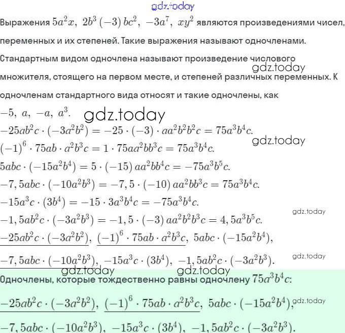 Решение. §20. Умножение одночленов. Возведение одночлена в степень