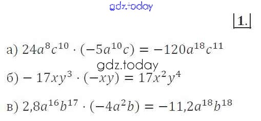 Ответы к Решение. §20. Умножение одночленов. Возведение одночлена в степень 1 Рабочей тетради по Алгебре для 7 класса Миндюк, Шлыкова Просвещение УМК 2017