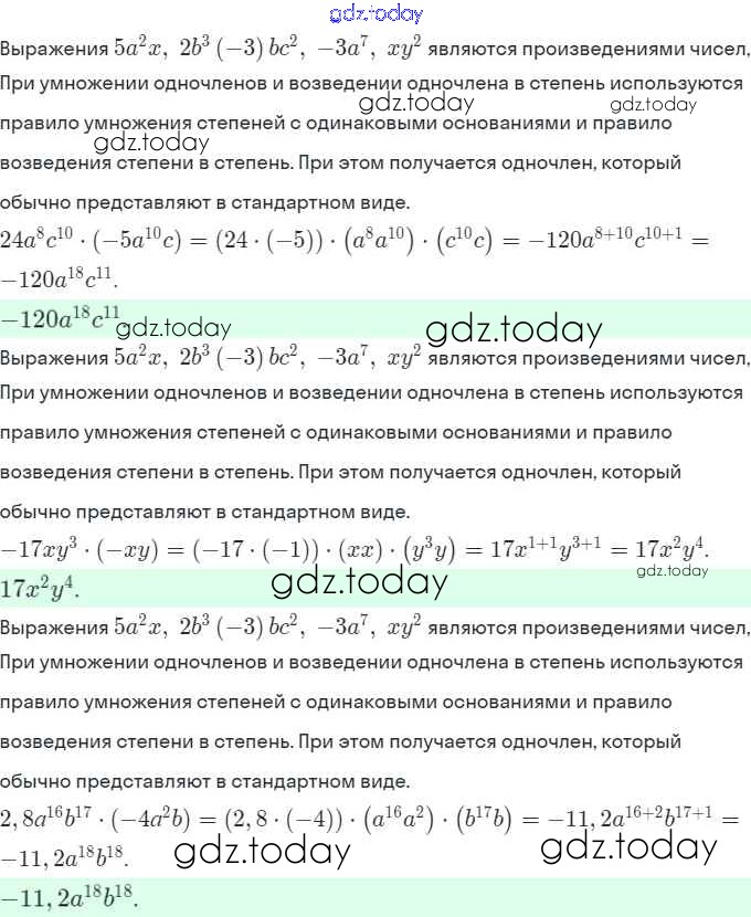 Решение. §20. Умножение одночленов. Возведение одночлена в степень
