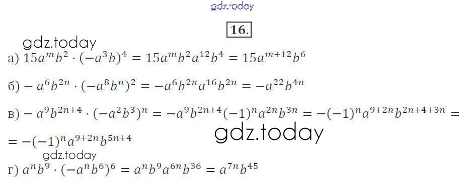 Ответы к Решение. §20. Умножение одночленов. Возведение одночлена в степень 16 Рабочей тетради по Алгебре для 7 класса Миндюк, Шлыкова Просвещение УМК 2017