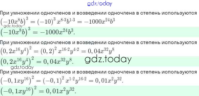Ответы к Решение. §20. Умножение одночленов. Возведение одночлена в степень 3 Рабочей тетради по Алгебре для 7 класса Миндюк, Шлыкова Просвещение УМК 2017