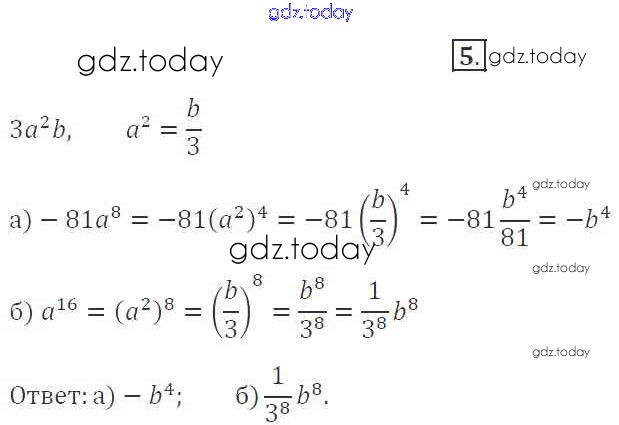 Ответы к Решение. §20. Умножение одночленов. Возведение одночлена в степень 5 Рабочей тетради по Алгебре для 7 класса Миндюк, Шлыкова Просвещение УМК 2017