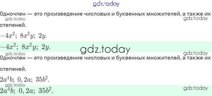 Ответы к Решение. §22. Многочлен и его стандартный вид 1 Рабочей тетради по Алгебре для 7 класса Миндюк, Шлыкова Просвещение УМК 2017