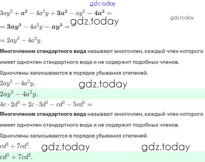 Ответы к Решение. §22. Многочлен и его стандартный вид 3 Рабочей тетради по Алгебре для 7 класса Миндюк, Шлыкова Просвещение УМК 2017