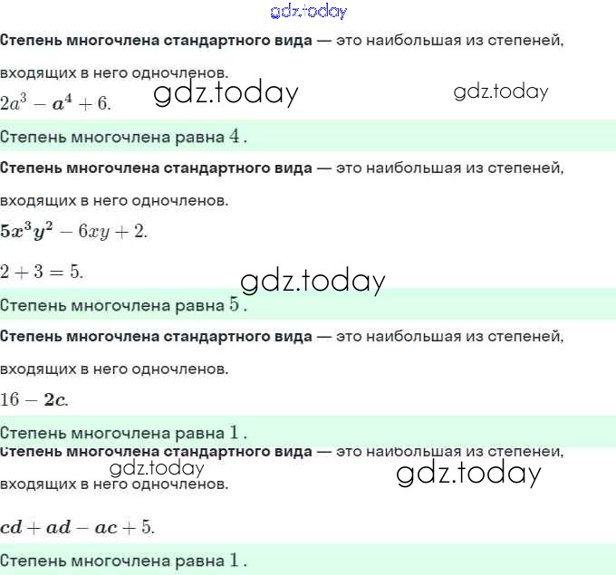 Ответы к Решение. §22. Многочлен и его стандартный вид 7 Рабочей тетради по Алгебре для 7 класса Миндюк, Шлыкова Просвещение УМК 2017