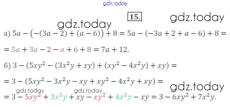 На страницах сайта gdz.today вы найдете учебный и вспомогательный материал, направленный на улучшения знаний школьной программы. ГДЗ - онлайн мир знаний Решение. §23. Сложение и вычитание многочленов 15 Рабочей тетради по Алгебре для 7 класса Миндюк, Шлыкова Просвещение УМК 2017