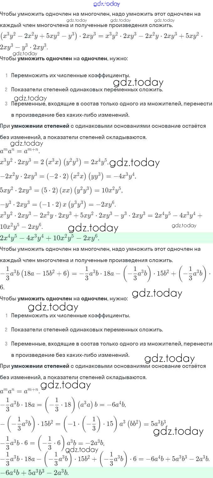 На страницах сайта gdz.today вы найдете учебный и вспомогательный материал, направленный на улучшения знаний школьной программы. ГДЗ - онлайн мир знаний Решение. §24. Умножение одночлена на многочлен 2 Рабочей тетради по Алгебре для 7 класса Миндюк, Шлыкова Просвещение УМК 2017