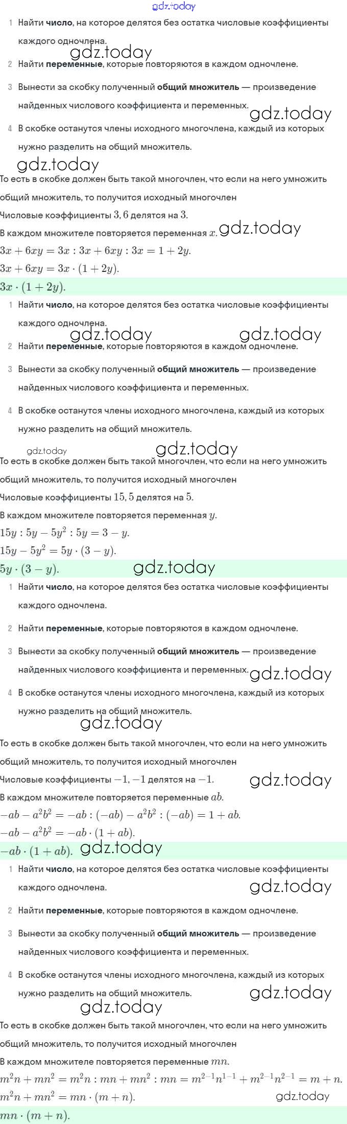 Ответы к Решение. §25. Вынесение общего множителя за скобки 3 Рабочей тетради по Алгебре для 7 класса Миндюк, Шлыкова Просвещение УМК 2017