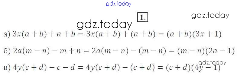 Ответы к Решение. §27. Разложение многочлена на множители способом группировки 1 Рабочей тетради по Алгебре для 7 класса Миндюк, Шлыкова Просвещение УМК 2017