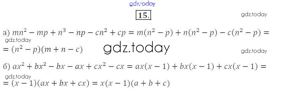 Ответы к Решение. §27. Разложение многочлена на множители способом группировки 15 Рабочей тетради по Алгебре для 7 класса Миндюк, Шлыкова Просвещение УМК 2017