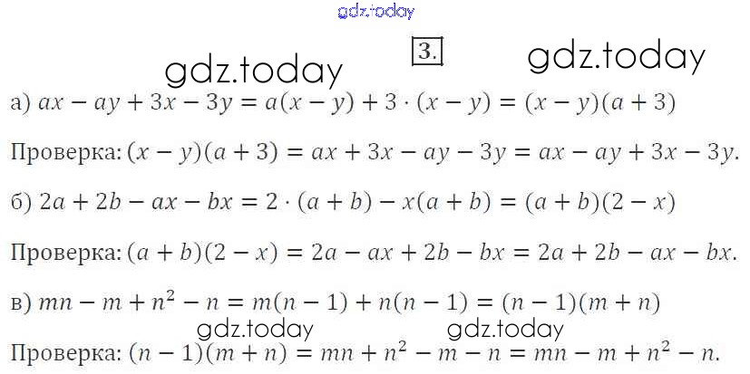 Ответы к Решение. §27. Разложение многочлена на множители способом группировки 3 Рабочей тетради по Алгебре для 7 класса Миндюк, Шлыкова Просвещение УМК 2017