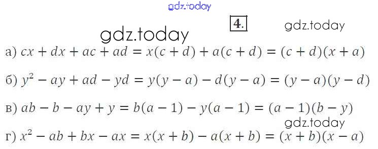 Ответы к Решение. §27. Разложение многочлена на множители способом группировки 4 Рабочей тетради по Алгебре для 7 класса Миндюк, Шлыкова Просвещение УМК 2017