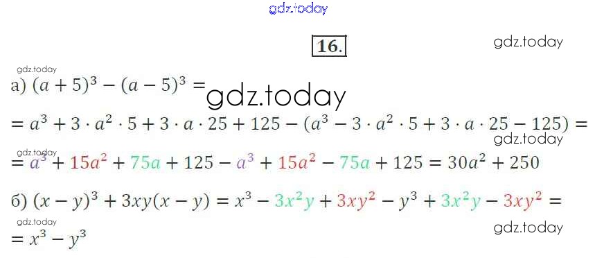 Ответы к Решение. §28. Возведение в квадрат и в куб суммы и разности двух выражений 16 Рабочей тетради по Алгебре для 7 класса Миндюк, Шлыкова Просвещение УМК 2017
